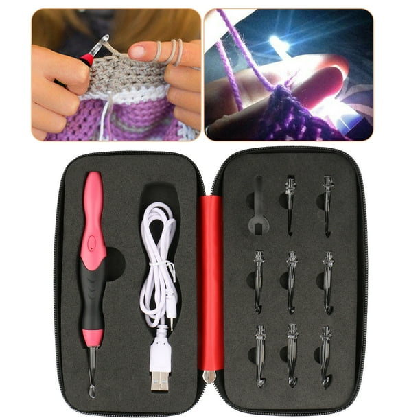 EEEkit 9 in 1 USB LED Lighted Crochet Hooks Set, Interchangeable Heads