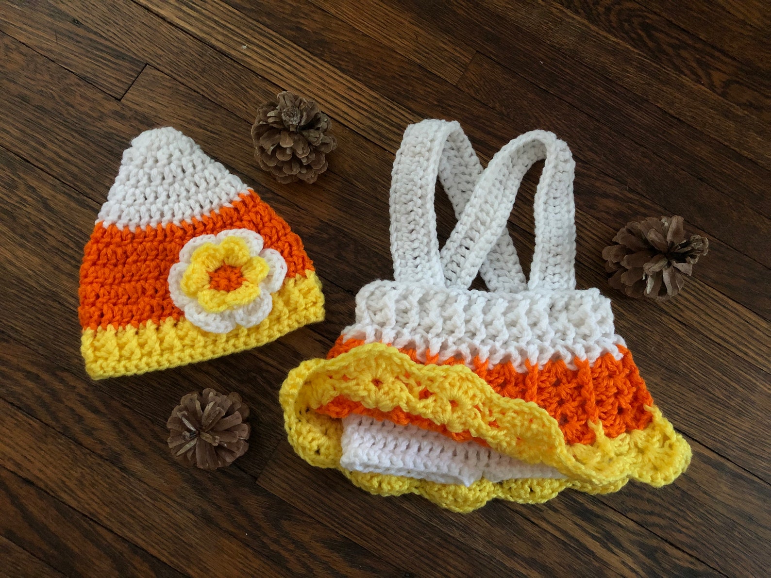 Web in this tutorial i show you step by step how to crochet a candy corn dress in size 2t. Also comes with the hat pattern. The dress/ skirt has an attached diaper cover and delicate shell design skirt; You can easily make these candy corns into simple decoration or a garland.