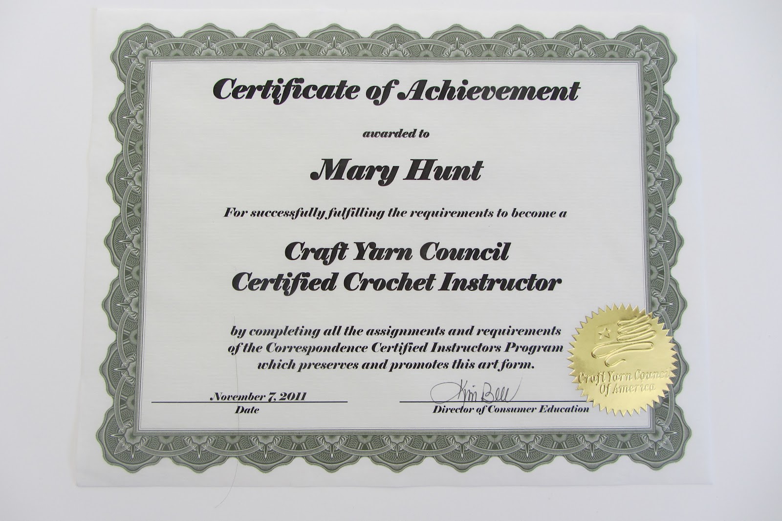 Crochet Instructor Certification Sample Certificate