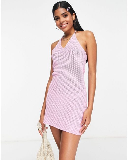 Monki Crochet Halterneck Mini Dress in Pink Lyst UK