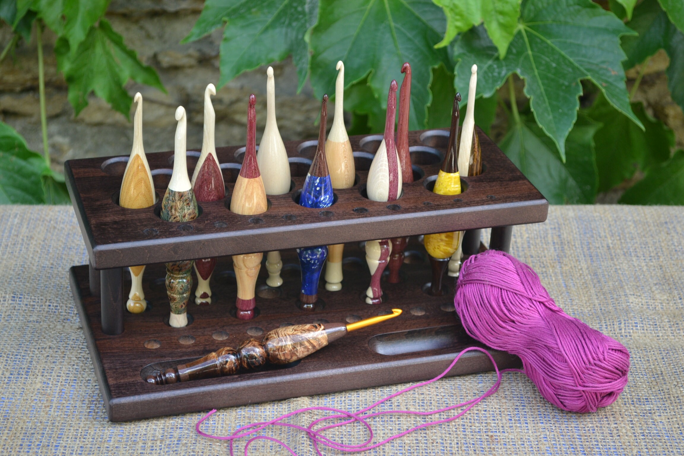 HANDMADE CROCHET HOOK STAND WALNUT WOOD