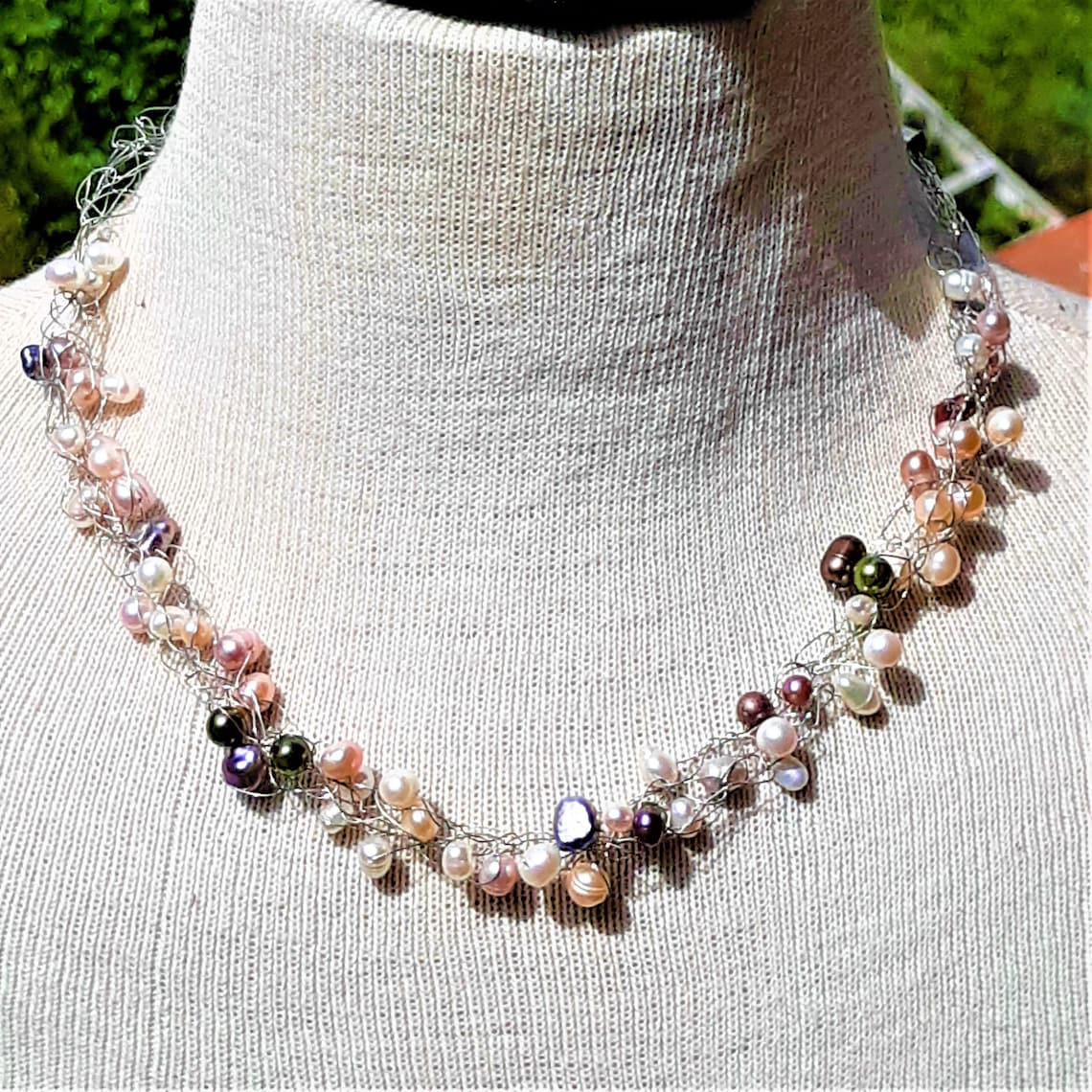 Crochet Freshwater pearl necklace Etsy