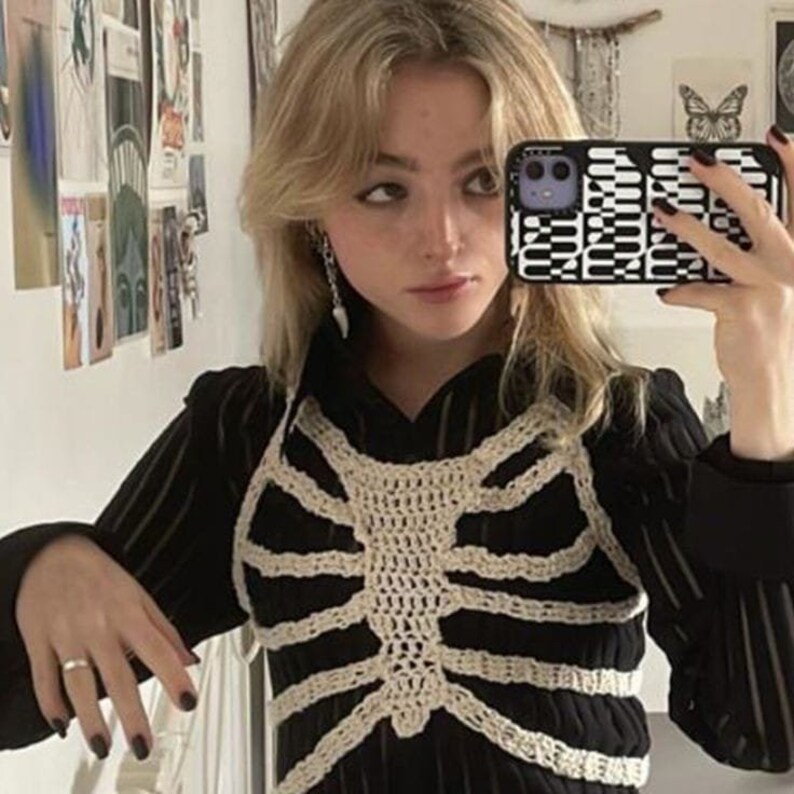 Crochet Skeleton Top Grunge Fairycore Goth Top Skeleton Etsy UK
