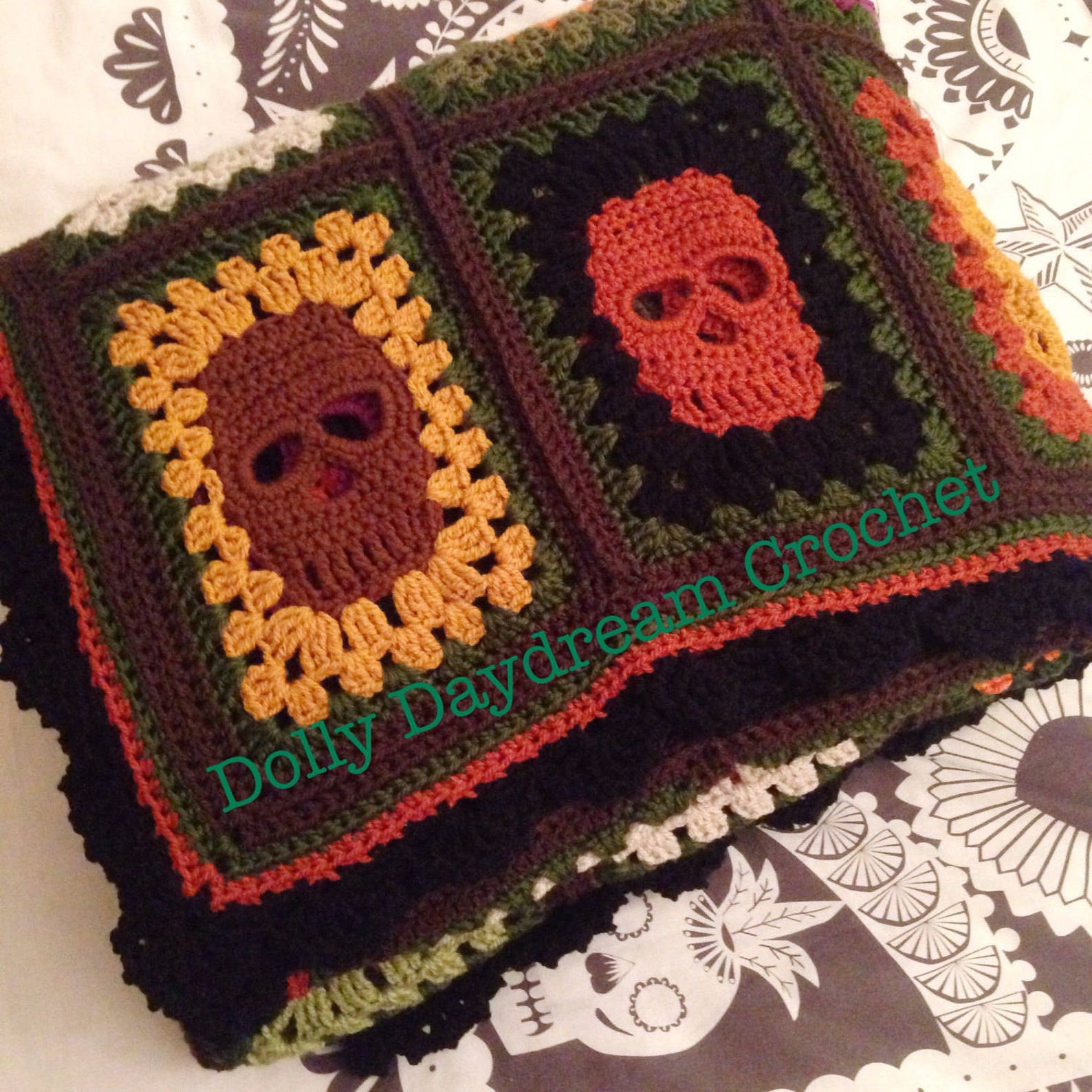 Crochet skull blanket skull afghan skull by DollyDaydreamCrochet
