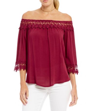 Jolt OffTheShoulder 3/4Sleeve Crochet Trim Top Dillards