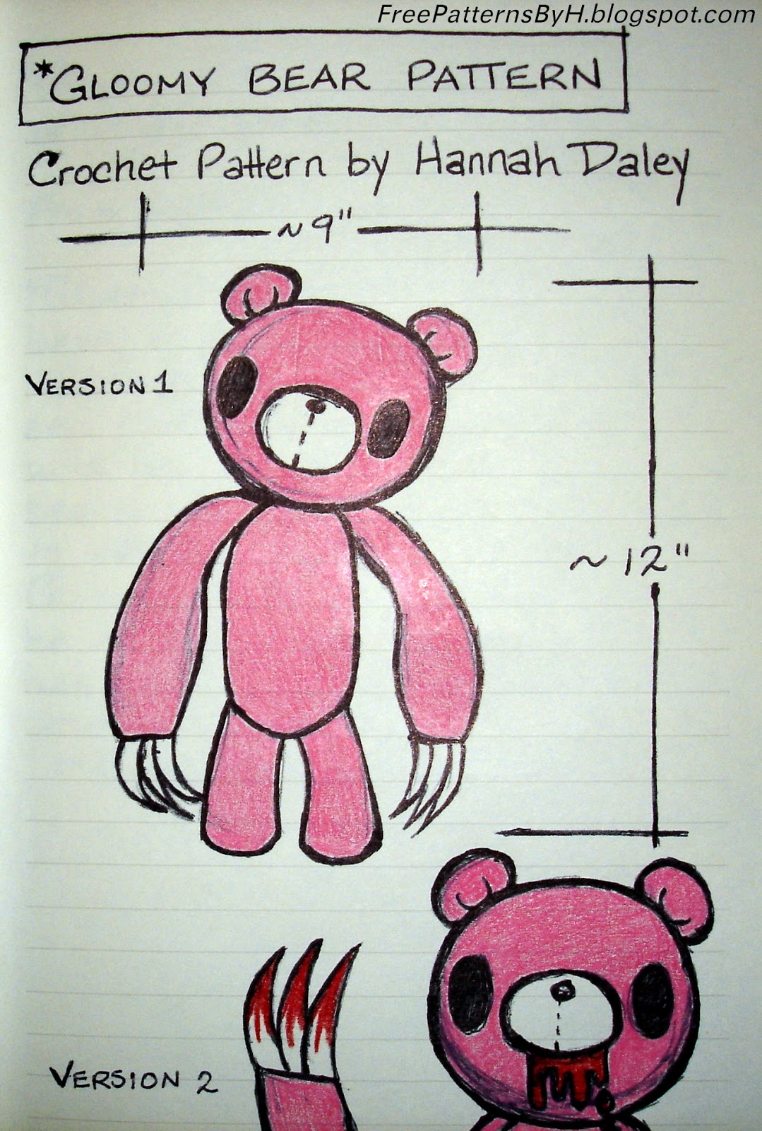 Free Patterns by H Gloomy Bear Pattern (Version 1)